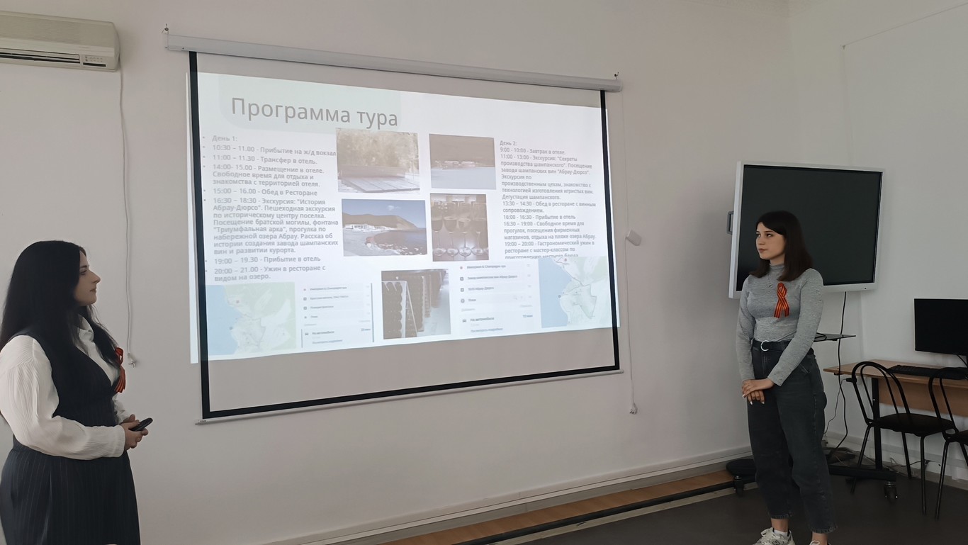 Мастер-класс «Организация и проведение экскурсии по местам военно-патриотической направленности в г. Апшеронск»: Яна Дорсман и Нина Жукова (34 группа) под чутким руководством Оксаны Викторовны Полторак провели экскурсию для студентов первого курса, продемонстрировав свои профессиональные навыки в сфере туризма и гостеприимства.