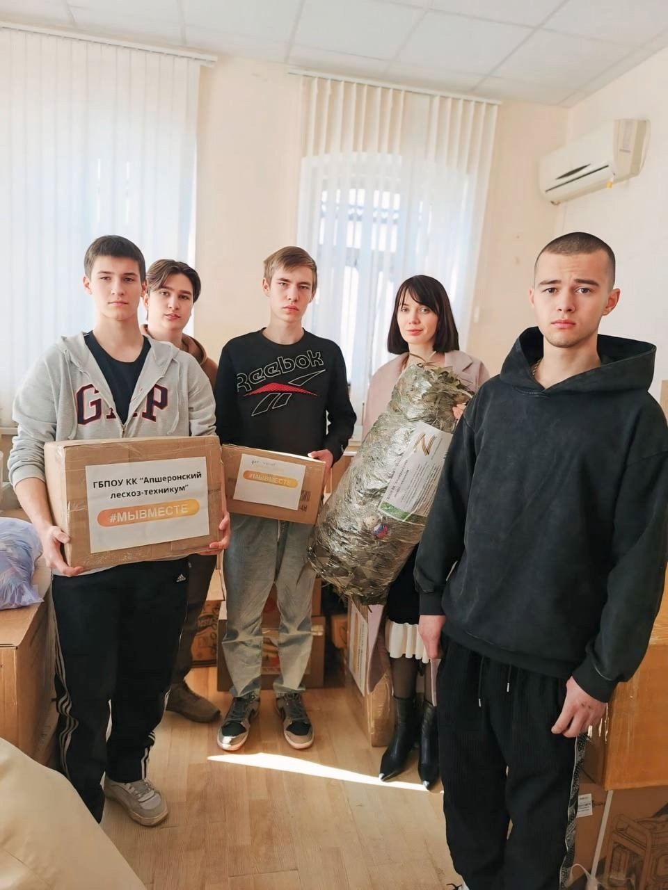 Студенты 41, 35 и 31 групп Апшеронского лесхоз-техникума проявили активную гражданскую позицию, участвуя в сборе гуманитарной помощи для военнослужащих специальной военной операции. Совместно с классными руководителями и родителями они собрали продуктовые наборы, средства личной гигиены и товары первой необходимости, которые были отправлены в муниципальный штаб «МыВместе».