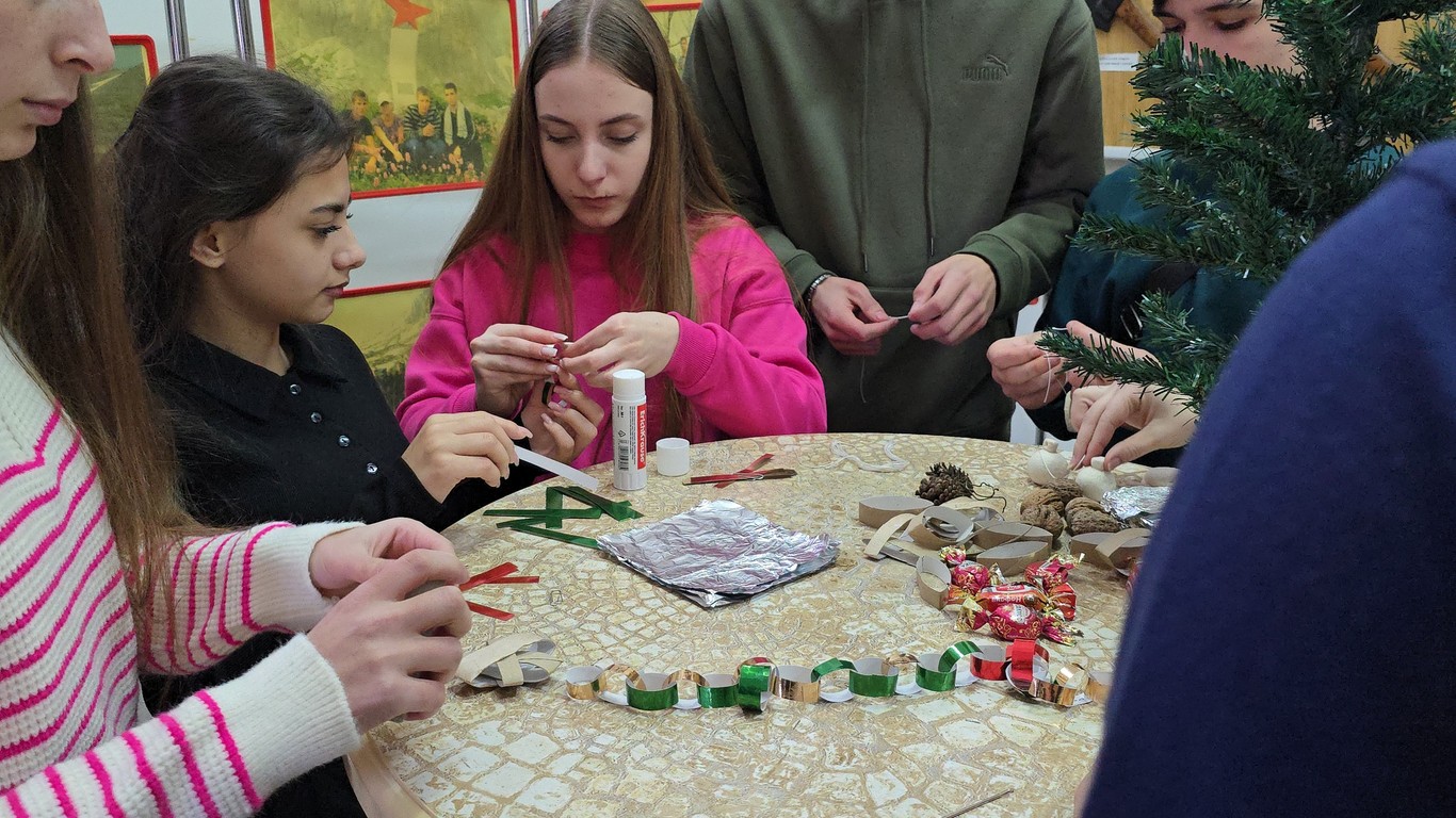 Своими семейными новогодними украшениями поделились Коновалова Г.М., Фоменко Т.В., Урюпкина А.В., Лукерина В.В, Полторак О.В., Жукова Нина. Шерстобитов Иван, Снегур Надежда, Полторак Егор, Бондарев Ярослав, Десюк Мария. Черняева Н.С. предоставила символ праздника Деда Мороза, которому уже около 60 лет. Помогли оформить экспозицию Зекох Екатерина, Теренкова Валерия, Агаркова Алина.